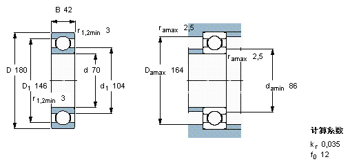 型號:6414/W64 品牌:SKF 系列:填充固態油的單列深溝球軸承 內徑:70 mm 外徑:180 mm 寬度:42 mm