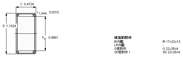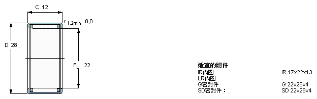 型號:HK 2212 品牌:SKF 系列:沖壓外圈滾針軸承 內徑:22 mm 外徑:28 mm 寬度:12 mm