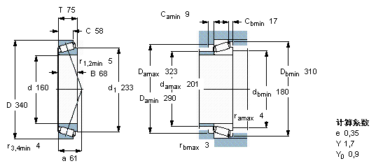 型號:30332 J2 品牌:SKF 系列:單列圓錐滾子軸承 內徑:160 mm 外徑:340 mm 寬度:75 mm
