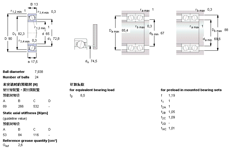 型號:71913 CE/HCP4A 品牌:SKF 系列:SKF高精密和超精密角接觸球軸承 內徑:65 mm 外徑:90 mm 寬度:13 mm