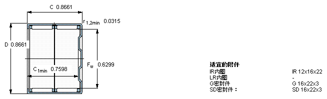 型號:BK 1622 品牌:SKF 系列:沖壓外圈滾針軸承 內徑:16 mm 外徑:22 mm 寬度:22 mm