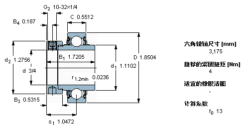 型號:YEL 204-012-2FCW 品牌:SKF 系列:用偏心鎖定環的 Y 型軸承 內徑:19.05 mm 外徑:47 mm 寬度:43.7 mm