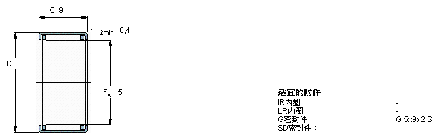 型號:HK 0509 品牌:SKF 系列:沖壓外圈滾針軸承 內徑:5 mm 外徑:9 mm 寬度:9 mm