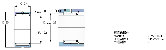 型號:RNA 6903 品牌:SKF 系列:帶機削環、法蘭、不帶內圈的滾針軸承 內徑:22 mm 外徑:30 mm 寬度:23 mm