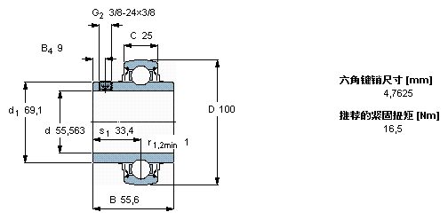型號:YAR 211-203-2FW/VA201 品牌:SKF 系列:用于高溫應用場合的Y軸承 內徑:55.563 mm 外徑:100 mm 寬度:55.6 mm