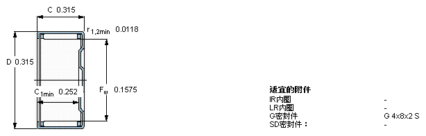 型號:BK 0408 品牌:SKF 系列:沖壓外圈滾針軸承 內徑:4 mm 外徑:8 mm 寬度:8 mm
