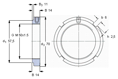 型號:KMFE 10 品牌:SKF 系列:帶鎖定螺釘的KMFE鎖定螺母 內徑:50 mm 外徑:70 mm 寬度:14 mm