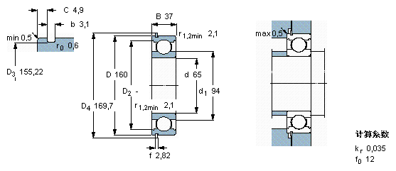 型號:6413 N 品牌:SKF 系列:帶止動槽的單列深溝球軸承 內(nèi)徑:65 mm 外徑:160 mm 寬度:37 mm