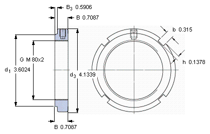 型號:KMFE 16 品牌:SKF 系列:帶鎖定螺釘的KMFE鎖定螺母 內徑:80 mm 外徑:105 mm 寬度:18 mm